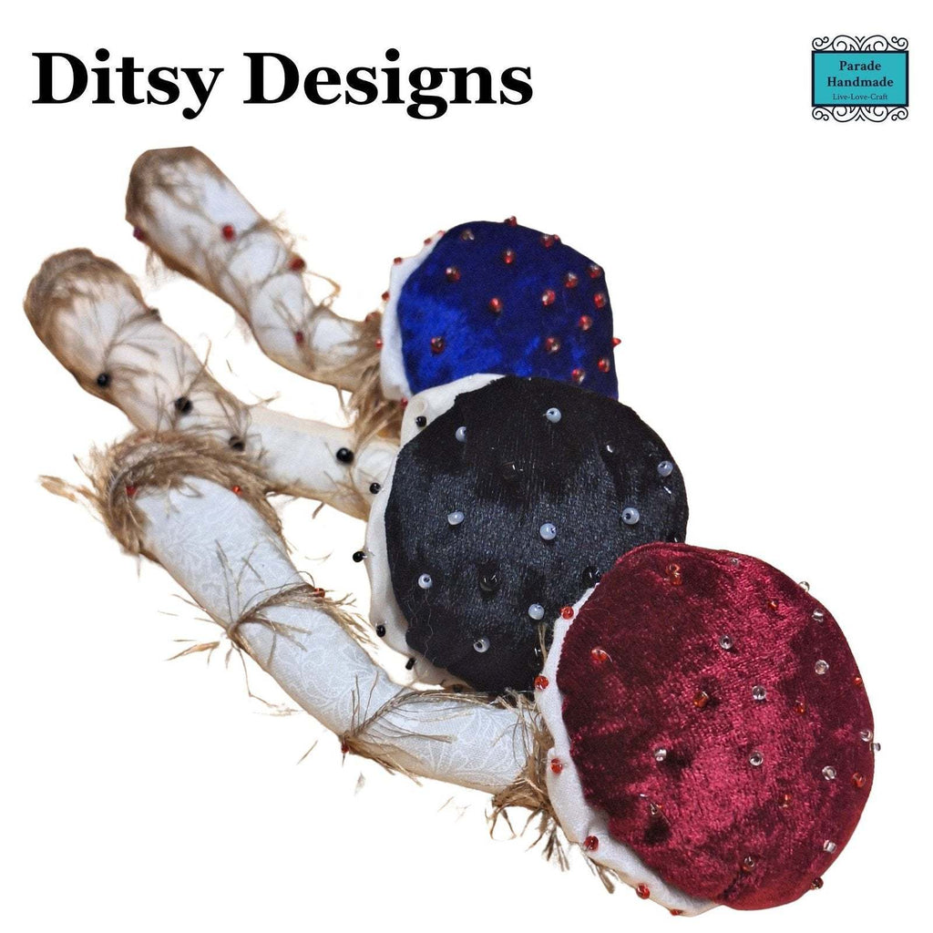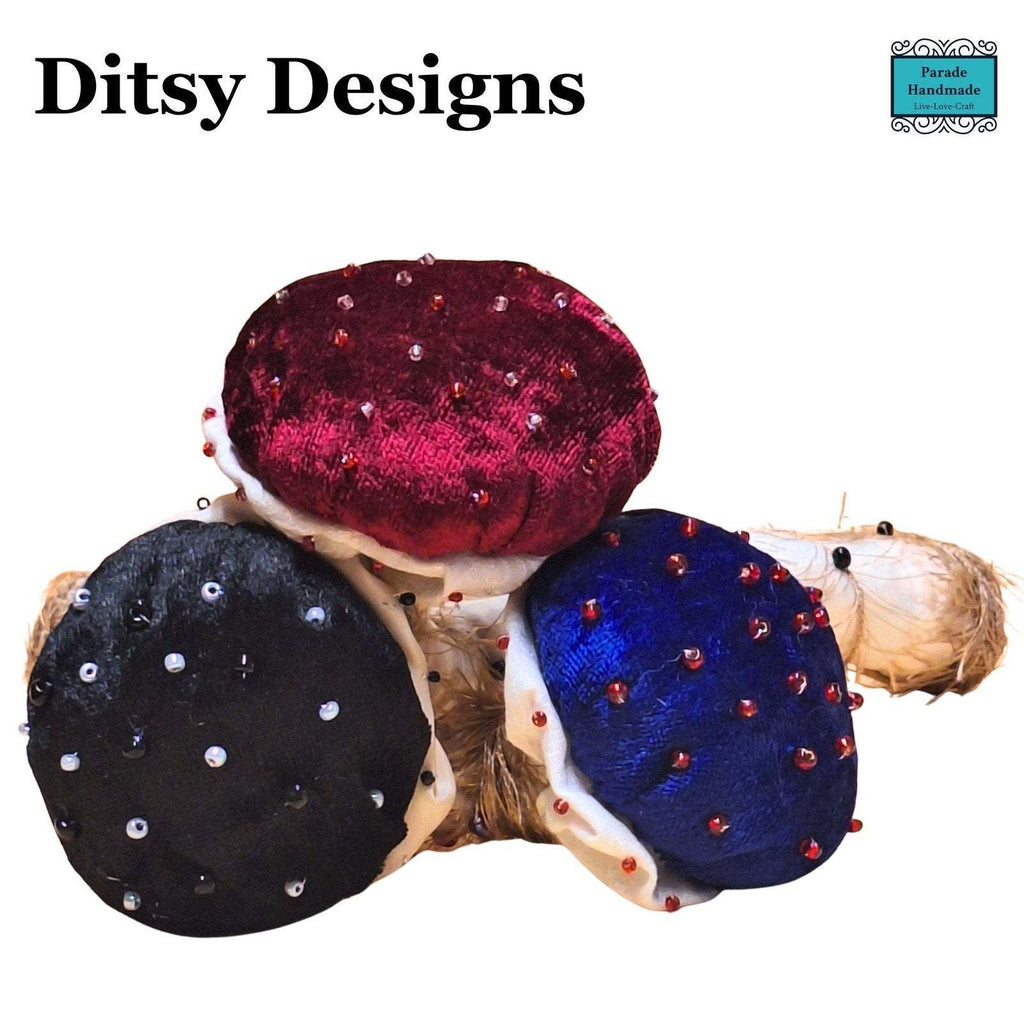 Handmade Blue Red or Black Velvet Mushroom Keepsakes – Beaded Hanging Ornaments or Pincushion by Ditsy Designs - Parade Handmade